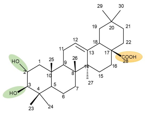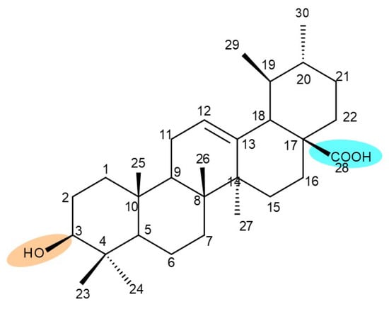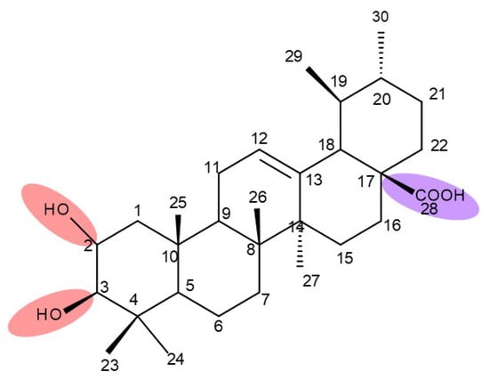 - Furtado, N.A.J.C.; Pirson, L.; Edelberg, H.; Miranda, L.M.; Loira-Pastoriza, C.; Preat, V.; Larondelle, Y.; André, C.M. Pentacyclic Triterpene Bioavailability: An Overview of In Vitro and In Vivo Studies. Molecules 2017, 22, 400. [Google Scholar] [CrossRef]