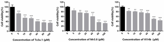 2.4. Tx3a.1, Mr3.8 and Vi14b Inhibited the Proliferation of ID8 Cells