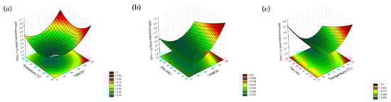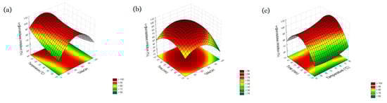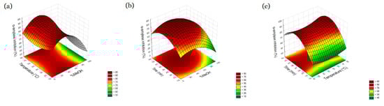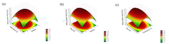A Box–Behnken statistical screening design was used to statistically develop the model and to investigate and evaluate the main, interaction, and quadratic effects of process parameters (temperature, time, organic solvent content) on antioxidant activity, antidiabetic activity, and polyphenol content. Box–Behnken design (BBD) was used to minimize the number of extracts obtained and to evaluate the relevant factors. The calculations and analyses were performed using the program Statistica 13.3 (TIBCO Software Inc, Palo Alto, CA, USA). The variables X1–3 are coded according to Table 4.