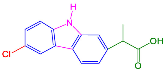 Structure of carprofen with anti-inflammatory activities.