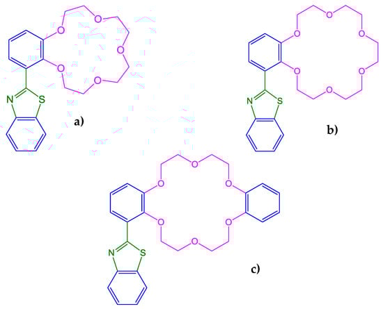 Structures of benzothiazole crown ethers (16a–16c).
