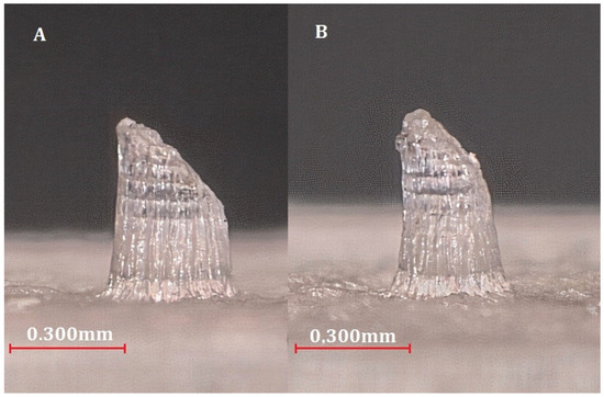 For the manufacture of MNs, the printing quality will determine the diameter values used to obtain a good structure with good printing resolutions.