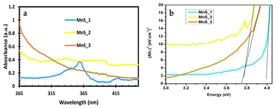 - Yu, X.; Li-yun, C.; Jian-feng, H.; Jia, L.; Jie, F.; Chun-yan, Y. Influence of S/Mn molar ratio on the morphology and optical property of γ-MnS thin films prepared by microwave hydrothermal. J. Alloys Compd. 2013, 549, 1–5. [Google Scholar] [CrossRef]