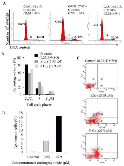 - Forestier-Román, I.S.; López-Rivas, A.; Sánchez-Vázquez, M.M.; Rohena-Rivera, K.; Nieves-Burgos, G.; Ortiz-Zuazaga, H.; Torres-Ramos, C.A.; Martínez-Ferrer, M. Andrographolide Induces DNA Damage in Prostate Cancer Cells. Oncotarget 2019, 10, 1085–1101. [Google Scholar] [CrossRef]