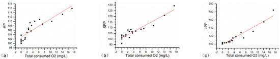 Most noteworthy was that the trend of MP ran counter to that of monomeric (%) along with wine oxidation according to the PLSR model and Figure 4, while both two chemical parameters may represent monomeric pigments in the wine. Actually, although MP, SPP and LPP were all increasing with the incremental amount of oxygen consumed, the trend-line slope of MP was much less than that of SPP and LPP, 0.82, 1.4 and 4.13, respectively, as shown in Table 4, which means polymeric pigments aggrandized much faster, especially LPP. Therefore, the increase in polymeric (%), which was interrelated with polymeric pigments, consequentially resulted in the decrease in monomeric (%).
