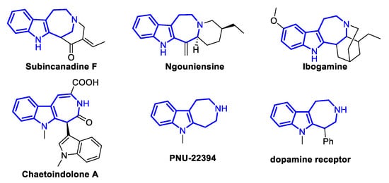 - Huang, Y.Q.; Liu, Y.X.; Liu, Y.X.; Song, H.J.; Wang, Q.M. C ring may be dispensable for b-carboline: Design, synthesis, and bioactivities evaluation of tryptophan analog derivatives based on the biosynthesis of b-carboline alkaloids. Bioorg. Med. Chem. 2016, 24, 462–473. [Google Scholar] [CrossRef]