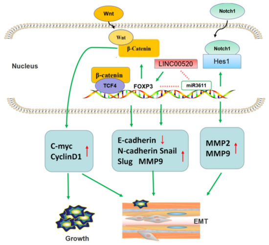 FOXP3 promotes tumor metastasis by promoting EMT in NSCLC. FOXP3 participated in Wnt/β-catenin pathway and Notch1/Hes1 pathway to regulate expression of EMT-related proteins. Furthermore, long non-coding RNA could also promote EMT by activating FOXP3 transcription.