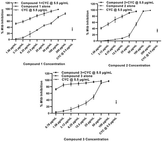 Compound Alone | Combination with 5.5 μg/mL CYC | ||||