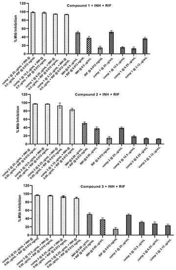 3.3. In Vitro Anti-Mycobacterial Activity of Test Compounds in Combination with Standard Drug(s)