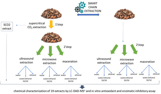 Chicago/Turabian StyleSut, Stefania, Erica Maccari, Gokhan Zengin, Irene Ferrarese, Francesca Loschi, Marta Faggian, Bertoni Paolo, Nicola De Zordi, and Stefano Dall’Acqua. 2022. "“Smart Extraction Chain” with Green Solvents: Extraction of Bioactive Compounds from Picea abies Bark Waste for Pharmaceutical, Nutraceutical and Cosmetic Uses" Molecules 27, no. 19: 6719. https://doi.org/10.3390/molecules27196719