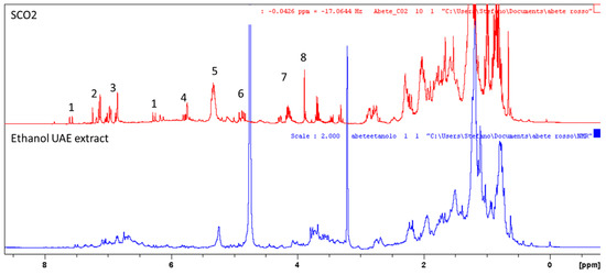 | 2 | 6.80–7.20 | Aromatic signals ascribable to hydroxycinnamic derivatves, phenolics, flavonoids, stilbenoids |