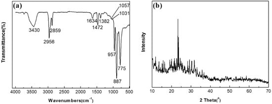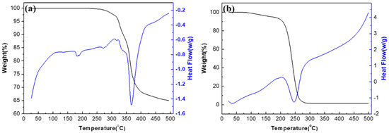 Fourier transform infrared spectroscopy (FT-IR) of the samples was performed by ALPHA-T Fourier Transform Infrared Spectrometer (BRUKER Corporation, Germany). X-ray diffraction (XRD) study was performed using D/MAX-rA X-ray diffractometer (Rigaku, Japan; Cu-Kα radiation, λ = 1.54184 Å, 40 kV × 40 mA). Thermogravimetric analysis (TGA) and differential scanning calorimetry (DSC) analysis were performed using SDT Q600 simultaneous thermal analyzer (TA Corporation, Westlake, OH, USA) with a heating rate of 10 °C/min. X-ray photoelectron spectroscopy (XPS) was performed using Thermo ESCALAB 250XI Multifunctional Imaging Electron Spectrometer (Thermo Fisher Scientific Corporation, Waltham, MA, USA).