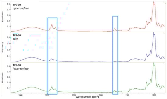 FTIR spectra for TPS-10 (upper surface, core and lower surface).