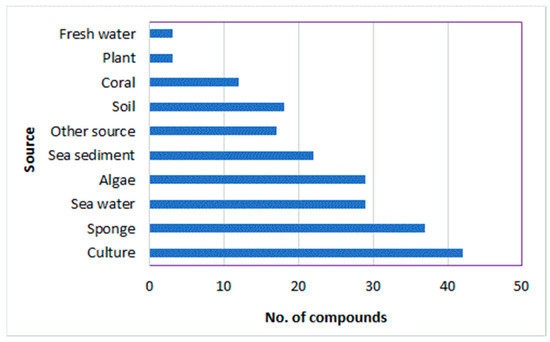 Compound 26, 25, and 27 were separated from fungus EtOAc extract by SiO2 CC. Compound 26 is structurally similar to 25 with the existence of a β-hydroxyl group in the isobutyl side chain [84] (Figure 3).