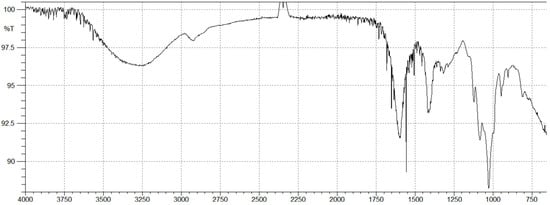 Fucoidan FTIR spectrum (Figure 1) revealed that the primary absorptive peaks were a characteristic of glycosidic structures and were related to C-O and C-C stretching vibrations of the pyranoid ring (1030 cm−1) and the anomeric C-H group (840 cm−1). The FTIR spectrum of fucoidan also exhibited a broad peak at 3250–3500 cm−1 which was attributed to a hydroxyl stretching vibration. The two peaks at 2910 and 2989 cm−1 corresponded to the stretching vibration of the C-H bond of the pyranoid ring and the C-6 group of fucose. The position of sulfate groups is contained in the ranges of 1500–700 cm−1. Furthermore, it has been reported that the broad signal at 1240 cm−1 (-S-O asymmetric stretching vibration of the sulfate group) is representative of the total sulfate esters in polysaccharides [].