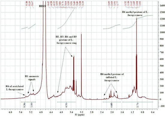 1H NMR spectrum of the extracted fucoidan polysaccharide.