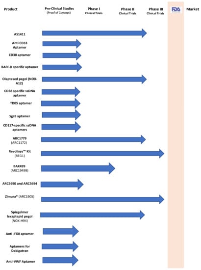 Knowledge of cancer cells and the molecular mechanisms of their diseases have rapidly expanded in the last decade, which helped to identify the defects and limitations of conventional strategies for diagnosing and treating hematological diseases [,]. Nanotechnology, including the use of aptamers, now provides transformative tools to translate biomedical findings into novel diagnostic, therapeutic, and preventive tools to treat different types of diseases in hematology [,].