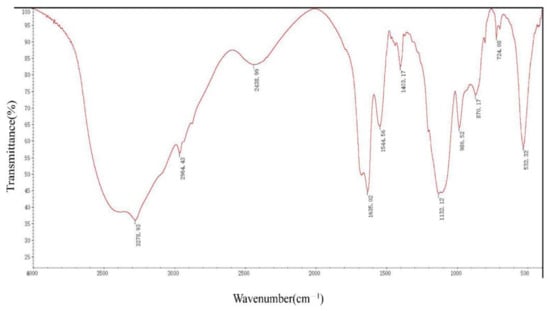 DFR3′ IR peaks reveal strong absorbance peaks in the 3400–2900 cm−1, 1640–1600 cm−1, 1300–1100 cm−1, and 600–450 cm−1 areas. There are other faint peaks in the 3000–2900 cm−1, 2400–2000 cm−1, 1661–1646 cm−1, 1550–1450 cm−1, 1400–1300 cm−1, 1000–950 cm−1, 900–800 cm−1, and 750–650 cm−1 areas (Figure 4).