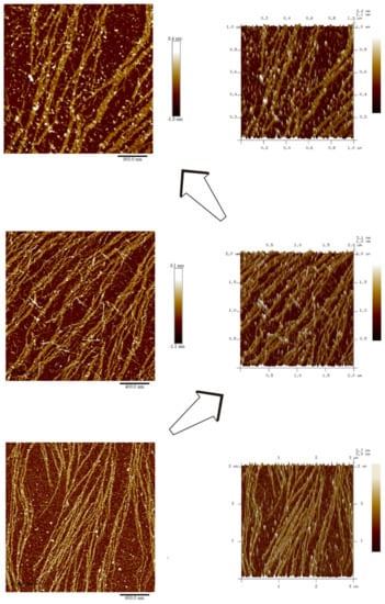 AFM results reveal that DRF3 forms an ordered nanofiber structure after self-assembling. DRF3 nanofibers are about 11.6–19.2 nm in diameter (Figure 6).