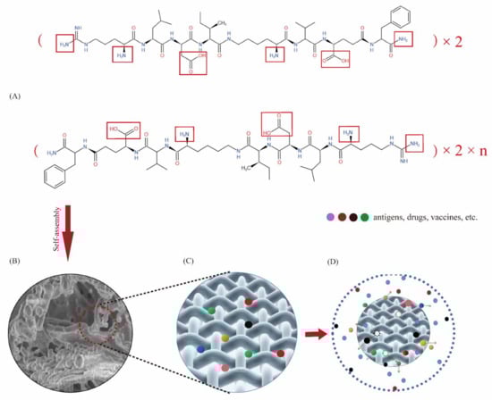 These self-assembly peptides are pure in composition [16], stable in performance [17], non-immunogenicity [18], non-toxic in degradation products and have good biocompatibility and has been demonstrated to be used in cell culture [19,20], drug delivery [21,22], regenerative medicine and immunotherapy [23]. At present, most peptide hydrogels are only studied as vaccine adjuvants in immunotherapy. The reason is that peptide hydrogels with good biocompatibility do not have immunogenicity, while peptide hydrogels with immunogenicity have toxic effects on cells.