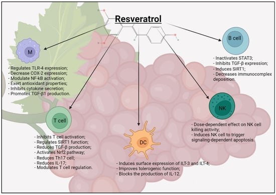 Alesci, A., Nicosia, N., Fumia, A., Giorgianni, F., Santini, A., & Cicero, N. (2022). Resveratrol and Immune Cells: A Link to Improve Human Health. Molecules, 27(2), 424. https://doi.org/10.3390/molecules27020424