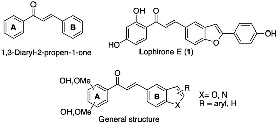 The potential of natural and synthetic chalcones as therapeutic leads against different pathological conditions has been investigated for several years, and this class of compounds emerged as a privileged chemotype due to its interesting anti-inflammatory, antimicrobial, antiviral, and anticancer properties. The objective of our study was to contribute to the investigation of this class of natural products as anti-leishmanial agents. We aimed at investigating the structure–activity relationships of the natural chalcone lophirone E, characterized by the presence of benzofuran B-ring, and analogues on anti-leishmania activity. Here we describe an effective synthetic strategy for the preparation of the natural chalcone lophirone E and its application to the synthesis of a small set of chalcones bearing different substitution patterns at both the A and heterocyclic B rings. The resulting compounds were investigated for their activity against Leishmania infantum promastigotes disclosing derivatives 1 and 28a,b as those endowed with the most interesting activities (IC50 = 15.3, 27.2, 15.9 μM, respectively). The synthetic approaches here described and the early SAR investigations highlighted the potential of this class of compounds as antiparasitic hits, making this study worthy of further investigation.