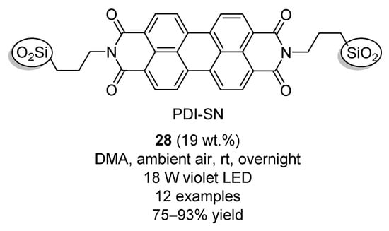 - Franchi, D.; Amara, Z. Applications of Sensitized Semiconductors as Heterogeneous Visible-Light Photocatalysts in Organic Synthesis. ACS Sustain. Chem. Eng. 2020, 8, 15405–15429. [Google Scholar] [CrossRef]