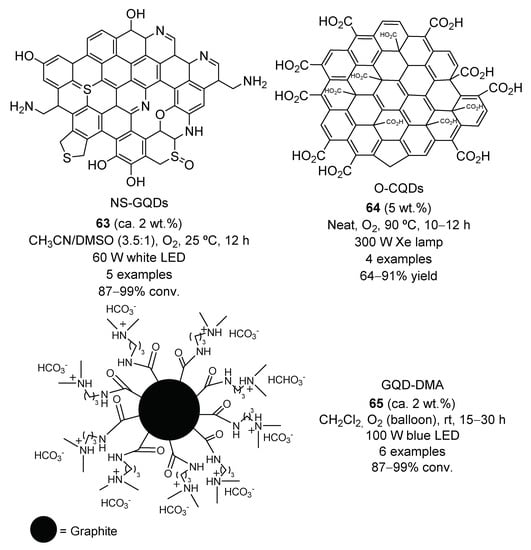 - Ye, J.; Ni, K.; Liu, J.; Chen, G.; Ikram, M.; Zhu, Y. Oxygen-Rich Carbon Quantum Dots as Catalysts for Selective Oxidation of Amines and Alcohols. ChemCatChem 2018, 10, 259–265. [Google Scholar] [CrossRef]