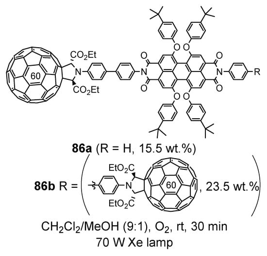 - Zhu, S.-E.; Liu, K.-Q.; Wang, X.-F.; Xia, A.-D.; Wang, G.-W. Synthesis and Properties of Axially Symmetrical Rigid Visible Light-Harvesting Systems Containing [60]Fullerene and Perylenebisimide. J. Org. Chem. 2016, 81, 12223–12231. [Google Scholar] [CrossRef]