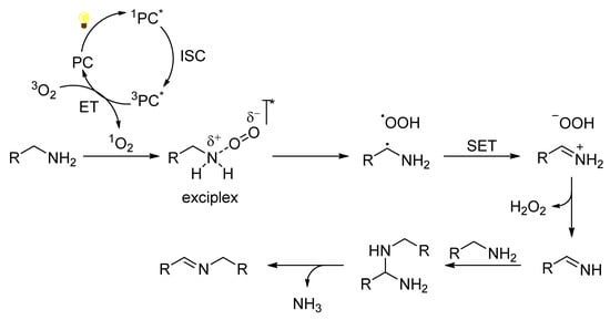- Wang, H.; Man, Y.; Wang, K.; Wan, X.; Tong, L.; Li, N.; Tang, B. Hydrogen Bond Directed Aerobic Oxidation of Amines Via Photoredox Catalysis. Chem. Commun. 2018, 54, 10989–10992. [Google Scholar] [CrossRef] [PubMed] [Green Version]