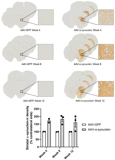Taking the aforementioned evidence into consideration, the aim of this study is to examine the time-course of changes in components of the endocannabinoid system after viral-mediated α-synuclein overexpression in the rat brain.