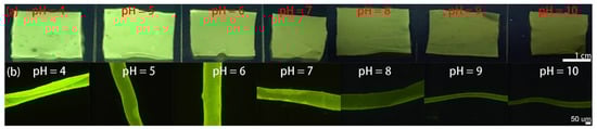 - Venkatesan, M.; Veeramuthu, L.; Liang, F.-C.; Chen, W.-C.; Cho, C.-J.; Chen, C.-W.; Chen, J.-Y.; Yan, Y.; Chang, S.-H.; Kuo, C.-C. Evolution of electrospun nanofibers fluorescent and colorimetric sensors for environmental toxicants, pH, temperature, and cancer cells—A review with insights on applications. Chem. Eng. J. 2020, 397, 125431. [Google Scholar] [CrossRef]