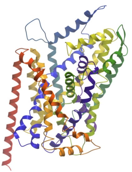 Human MATs are large integral membrane proteins consisting of about 600 amino acids that contain 12 transmembrane α-helices (TM1 to TM12) connected by intra- and extracellular loops (ILs and ELs). Crystal structures of transporter bound with substrate and inhibitors have advanced our understanding of the mechanism of action of MATs and help in the discovery of novel antidepressants. The first structure elucidated was a bacterial homologue of the human monoamine transporters, the leucine transporter (LeuT) bound to its substrate in an occluded conformation (Figure 2) [151]. Furthermore, several crystal structures of LeuT in different conformational states were reported [152,153,154,155]. In addition, crystal structures of the Drosophila melanogaster dopamine transporter (dDAT) [156] and human serotonin transporter [157] in complex with different transport blockers and in altered conformational states were resolved and have given remarkable insights into the inhibitory mechanisms of these transporters.
