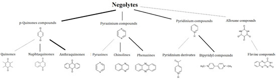 The physicochemical and electrochemical properties of organic electroactive compounds are easily and effectively modified by functional groups to improve cell performance. The highly tailorable properties of organic molecules are their big advantage, but such a process alters the toxicity, which is unknown and difficult to predict for the. obtained derivative. However, some similarities regarding the toxicological behavior have been observed related to the appearance of a given moiety in an organic molecule. The introduction of a halogen atom into organic compounds is generally associated with an increase in the toxicity of the obtained derivative [90,91]. Moreover, the bigger number of halogen substituents potentially increases the health hazards from the given analogue molecule. Additionally, the positions of the halogens relative to each other are also an important consideration. Very few halogenated compounds occur naturally. Most are produced synthetically in the laboratory or as a result of industrial processes. The toxicity of a derivative generally increases as the size of the halogen atom decreases. Moreover, halogen and hydroxy groups together give rise to highly poisonous substances considerably more effective than when present separately.