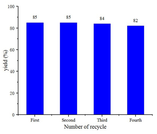 After completion of the reaction, the mixture was extracted by ethyl acetate (2 × 10 mL) and dried over anhydrous sodium sulfate. Ethyl acetate was removed in a vacuum and the crude product was obtained. Then, the water layer was recycled and removed in a vacuum to obtain the reused catalyst.