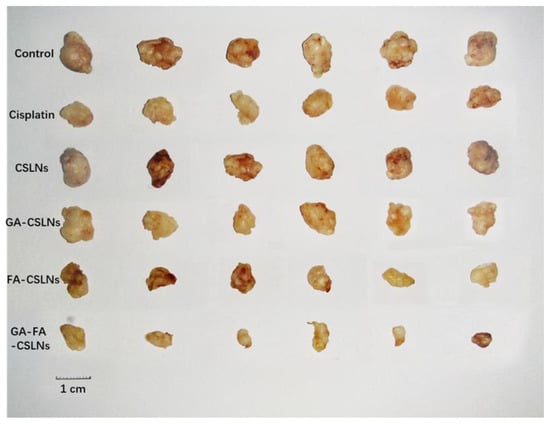 Cisplatin [44], CTD solution, GA-CSLNs, FA-CSLNs, and GA-FA-CSLNs were measured with the same method as CSLNs.