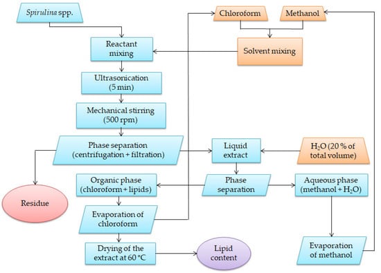 - Kalsum, U.; Kusuma, H.S.; Roesyadi, A.; Mahfud, M. Lipid Extraction from Spirulina platensis using microwave for biodiesel production. Korean Chem. Eng. Res. 2019, 57, 301–304. [Google Scholar]
