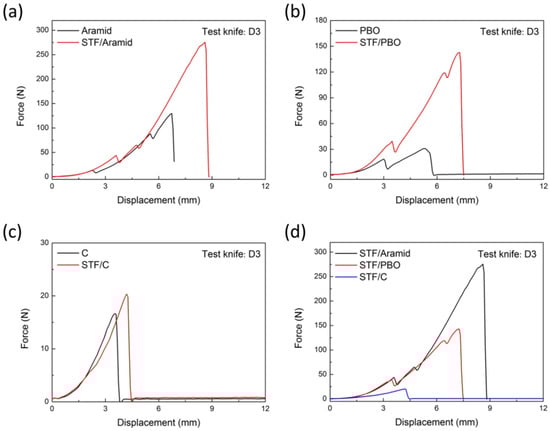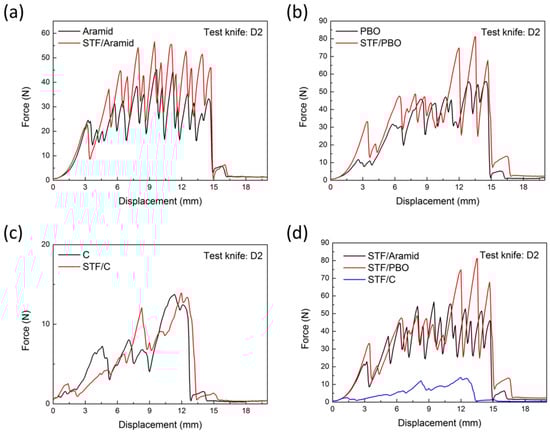 - Li, T.T.; Dai, W.; Wu, L.; Peng, H.K.; Zhang, X.; Shiu, B.C.; Lin, J.H.; Lou, C.W. Effects of STF and fiber characteristics on quasi-static stab resistant properties of shear thickening fluid (STF)-impregnated UHMWPE/Kevlar composite fabrics. Fibers Polym. 2019, 20, 328–336. [Google Scholar] [CrossRef]