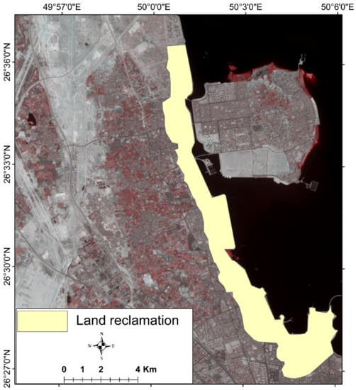 Map showing land reclamation in the study area.