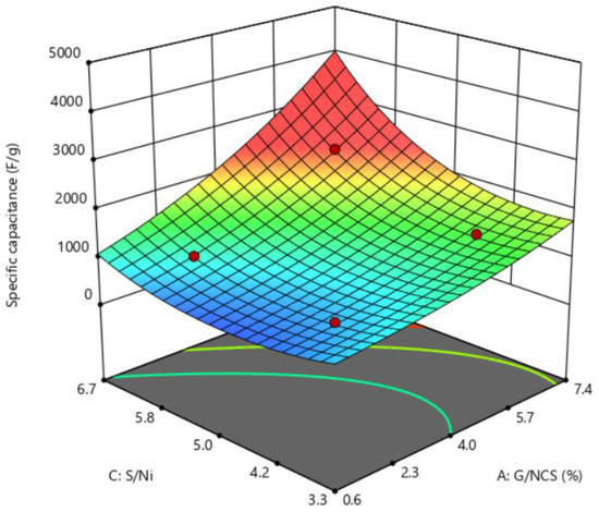 Response surface plot of specific capacitance against G/NCS and S/Ni.
