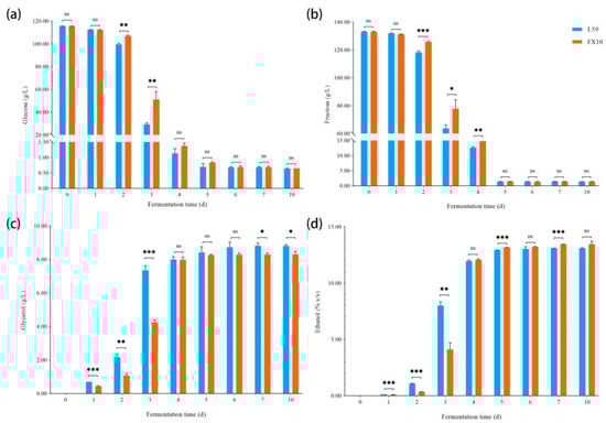 | Glycerol (g/L) | N.D. | 8.81 ± 0.06a | 8.31 ± 0.14b |