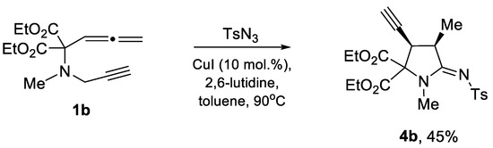 It turns out that the analogous cascade process also takes place in the case of readily available allenyne 1b [29] to afford the corresponding proline 4b as a single diastereomer in an acceptable isolated yield under the same catalytic conditions (Scheme 4).