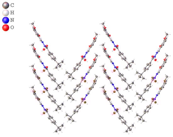 Crystal packing diagram of 4-(t-Bu)-N′-(2-hydroxy-3-methoxybenzylidene)benzohydrazide (5).