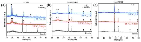 - Ji, J.; Liang, L.; Xu, H.; Xiang, G.; Li, H.; Li, P.; Zhou, X.; Guo, X. Facile solvent evaporation synthesis of core-shell structured Al@PVDF nanoparticles with excellent corrosion resistance and combustion properties. Combust. Flame 2021, 238, 111925. [Google Scholar] [CrossRef]