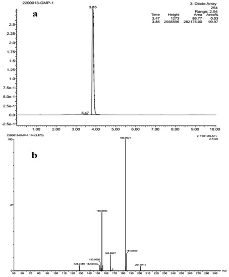 (a) Liquid chromatogram (b) mass spectrum studies of isolated compound.