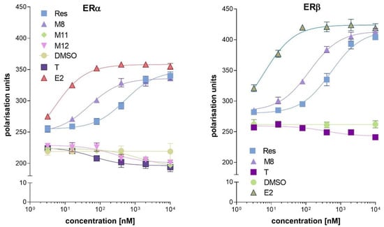 2.1. Binding Affinity of Resveratrol and Its Analogues to ERα and ERβ