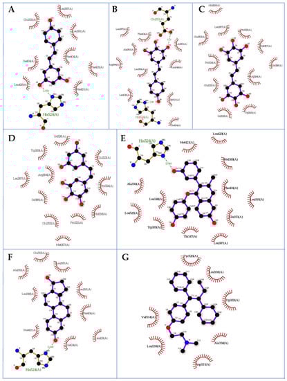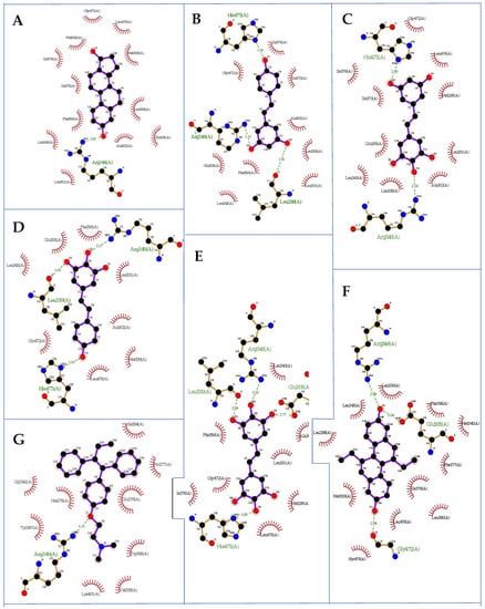 - Laskowski, R.A.; Swindells, M.B. LigPlot+: Multiple Ligand–Protein Interaction Diagrams for Drug Discovery. J. Chem. Inf. Model. 2011, 51, 2778–2786. [Google Scholar] [CrossRef]