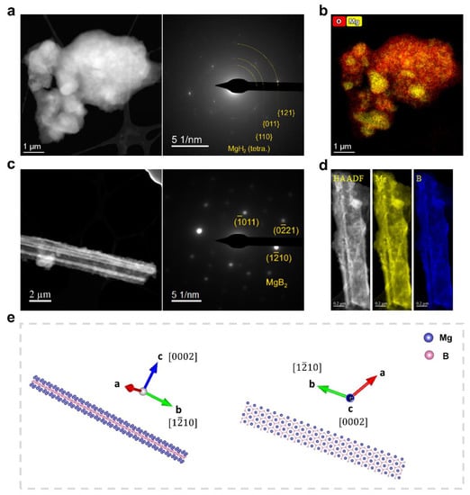 - Jin, O.; Shang, Y.; Huang, X.; Mu, X.; Szabó, D.V.; Le, T.T.; Wagner, S.; Kübel, C.; Pistidda, C.; Pundt, A. Microstructural Study of MgB2 in the LiBH4-MgH2 Composite by Using TEM. Nanomaterials 2022, 12, 1893. [Google Scholar] [CrossRef]