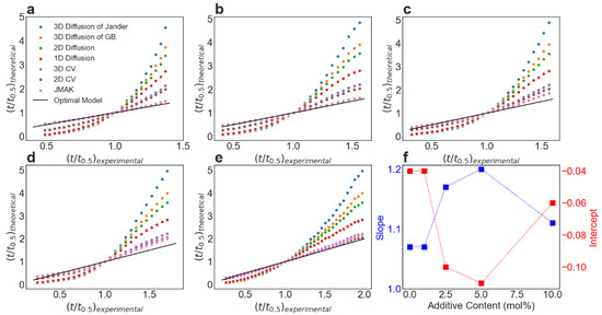 - Sharp, J.H.; Brindley, G.W.; Achar, B.N.N. Numerical Data for Some Commonly Used Solid State Reaction Equations. J. Am. Ceram. Soc. 1966, 49, 379–382. [Google Scholar] [CrossRef]