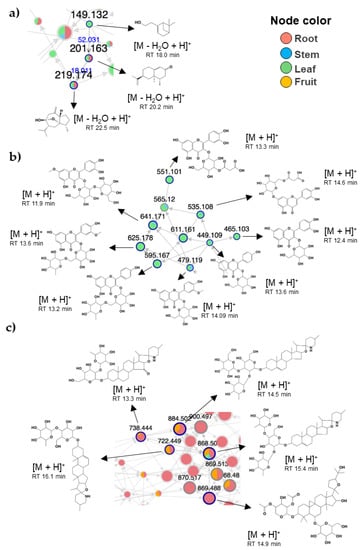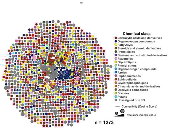 - Hoffmann, M.A.; Nothias, L.F.; Ludwig, M.; Fleischauer, M.; Gentry, E.C.; Witting, M.; Böcker, S. High-confidence structural annotation of metabolites absent from spectral libraries. Nat. Biotechnol. 2022, 40, 411–421. [Google Scholar] [CrossRef]
